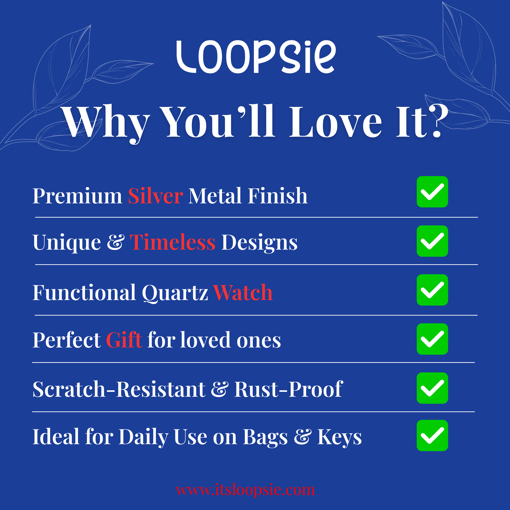 Upgrade your everyday carry with the Loopsie Pocket Watch Keychain β a timeless keepsake designed for daily elegance and effortless gifting.
