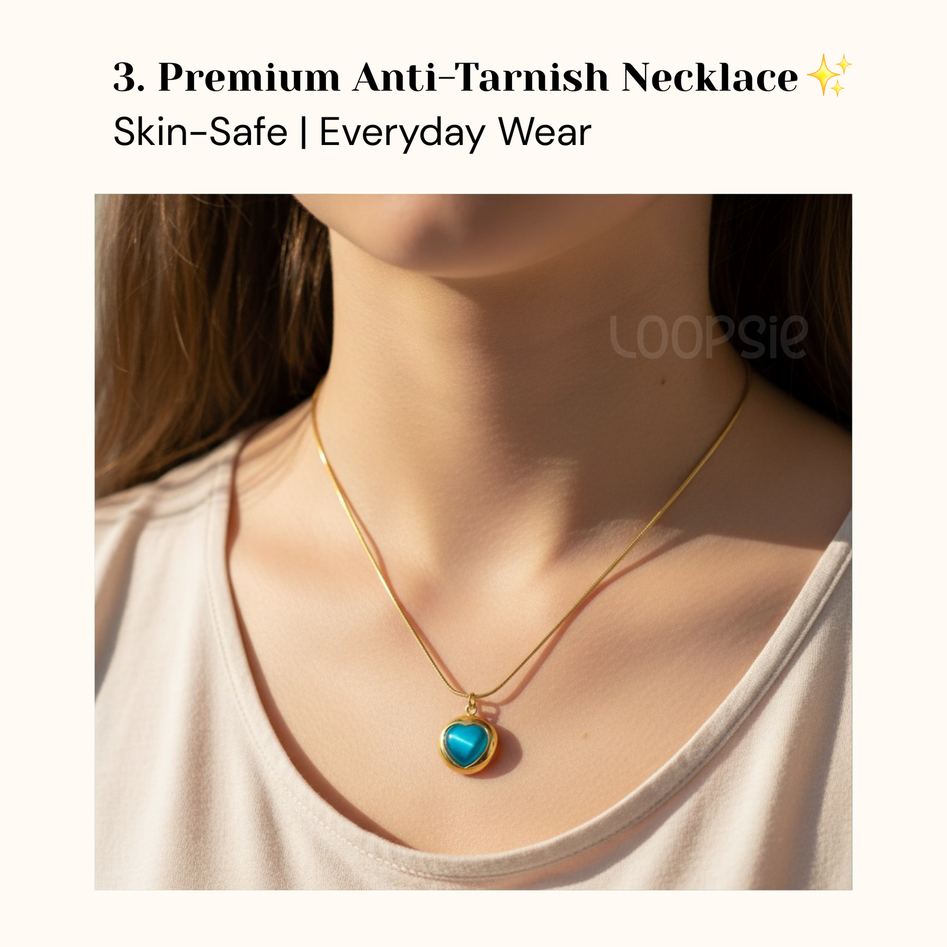 - 1 Premium Anti-Tarnish Necklace with a blue heart pendant (hypoallergenic & skin-safe)