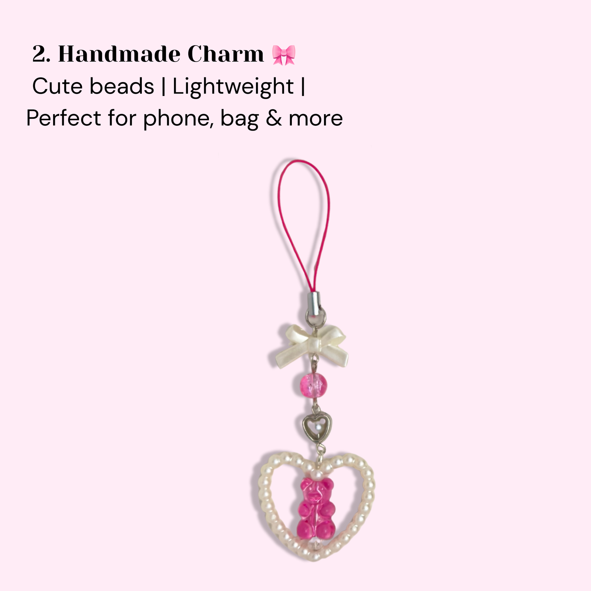 - 1 Handmade Beaded Phone/Bag Charm with pearls & bow details