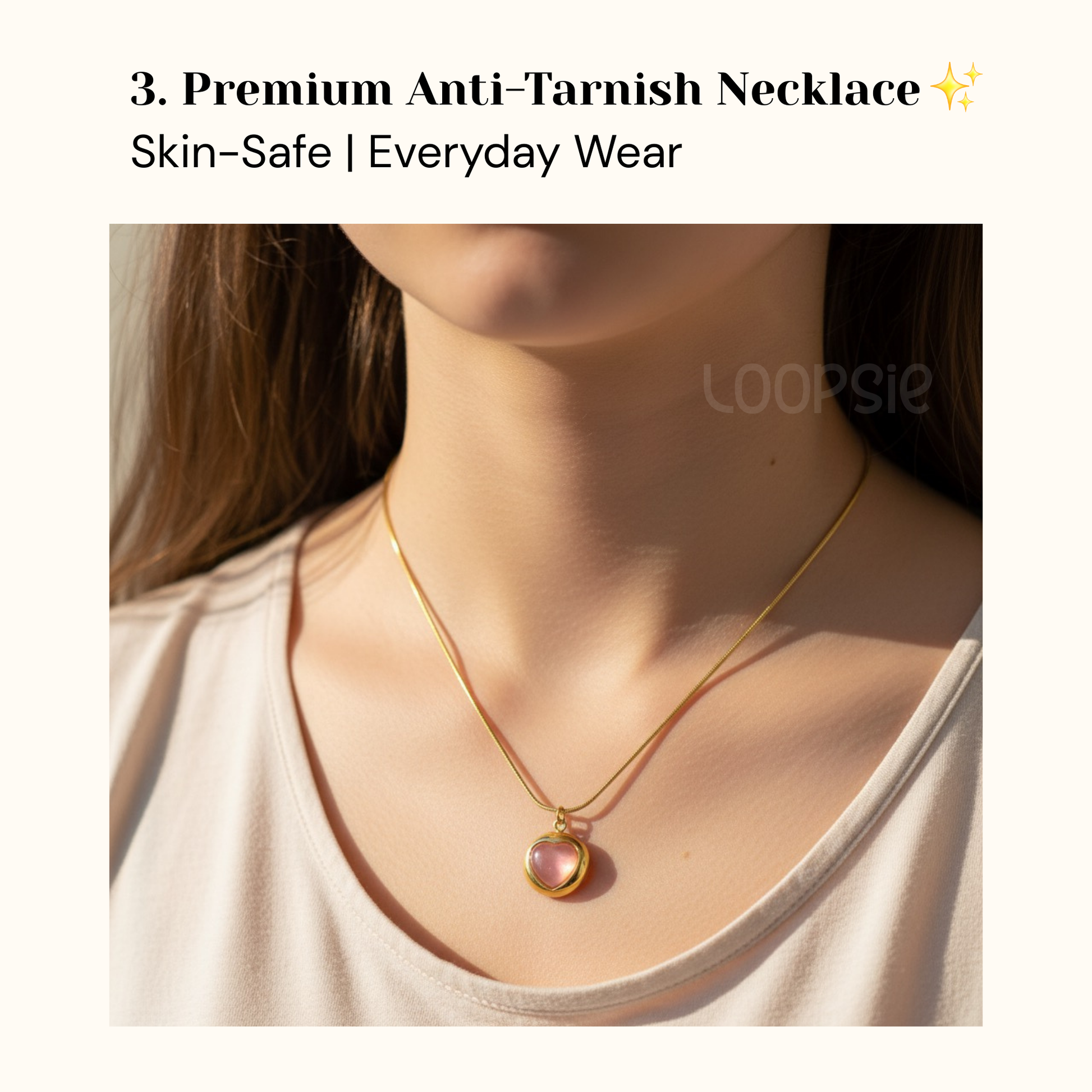 - 1 Premium Anti-Tarnish Necklace with a pink heart pendant (hypoallergenic & skin-safe)