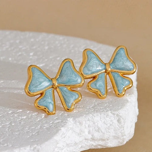 Elegance meets playfulness with the Belle Bow Ribbon Earrings—a charming blend of timeless sophistication and modern femininity. Designed in premium stainless steel with PVD real gold plating, these earrings feature a beautifully sculpted bow with a soft enamel finish, adding a graceful touch to any ensemble.