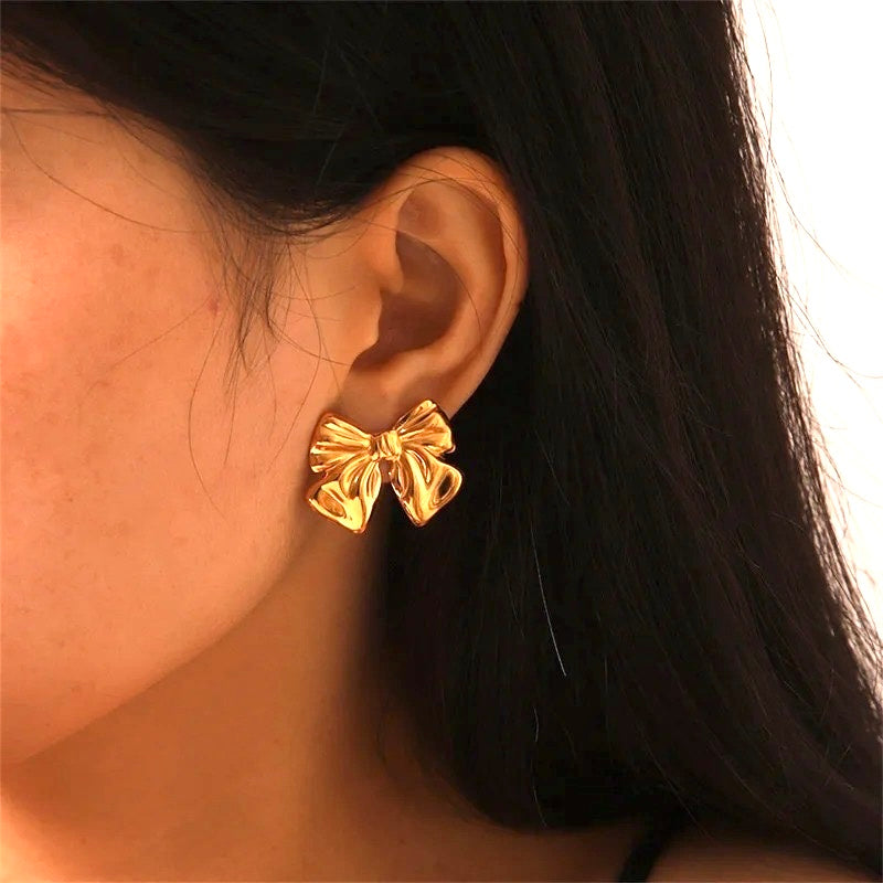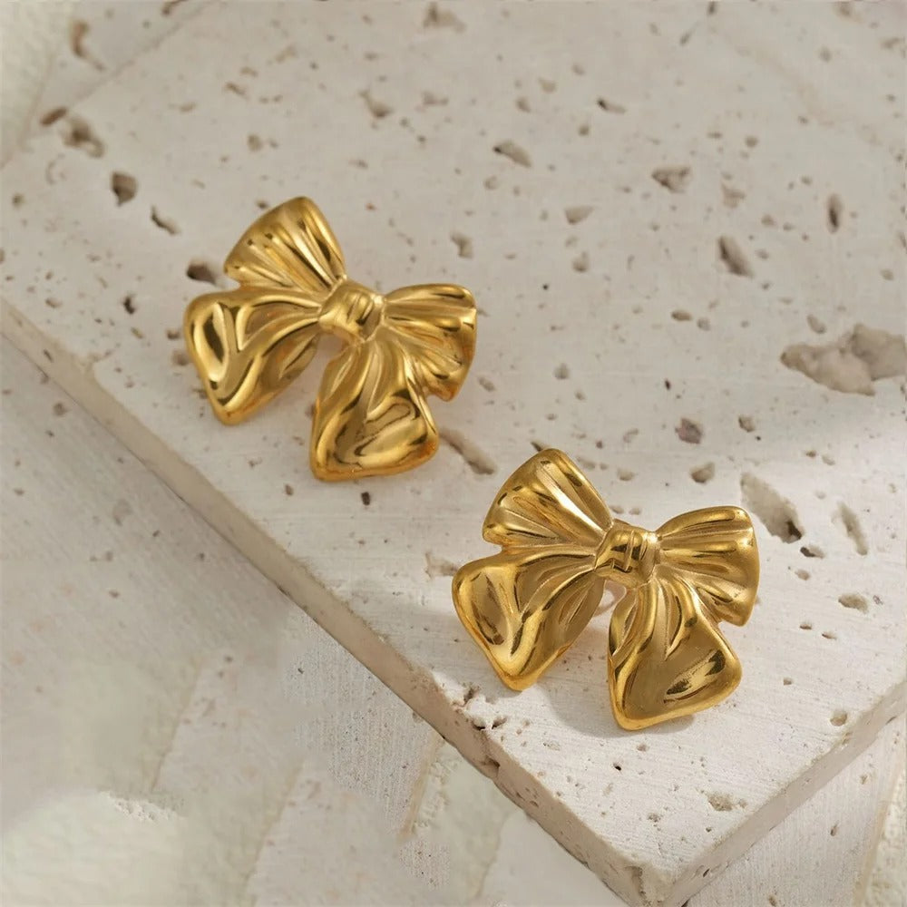 Chic, timeless, and effortlessly elegant, the Belva Bow Studs redefine classic femininity with their polished gold finish. A perfect blend of sophistication and charm, these statement studs add a refined touch to any look.