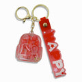 β’ Clear red mini backpack-shaped charm filled with liquid, blobs & glitter