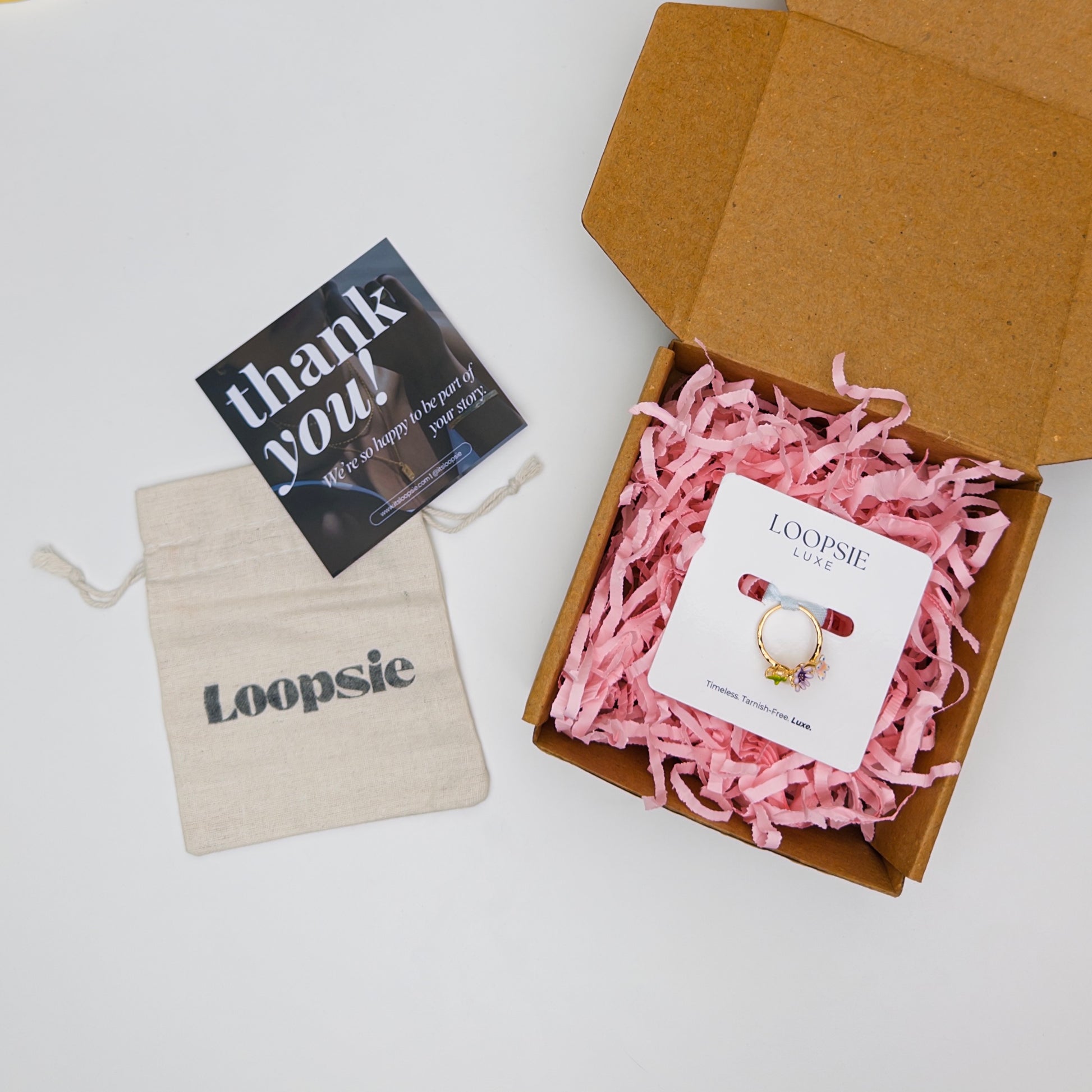 Comes in a gift-ready Loopsie Luxe box with a thank-you note and pouch π