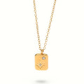 A celestial-inspired keepsake, the Starlit Charm Necklace features a dainty rectangular pendant adorned with a twinkling star engraving and delicate crystals. Designed for those who love subtle elegance with a cosmic touch, this piece is perfect for everyday wear or special occasions.