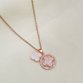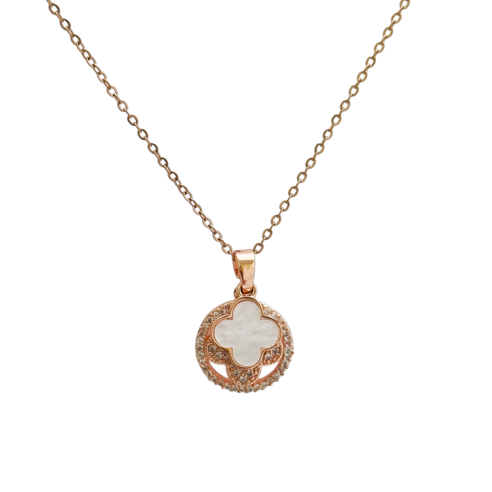 • Outer pendant: Circular clover frame encrusted with sparkling stones for a luxurious shine.