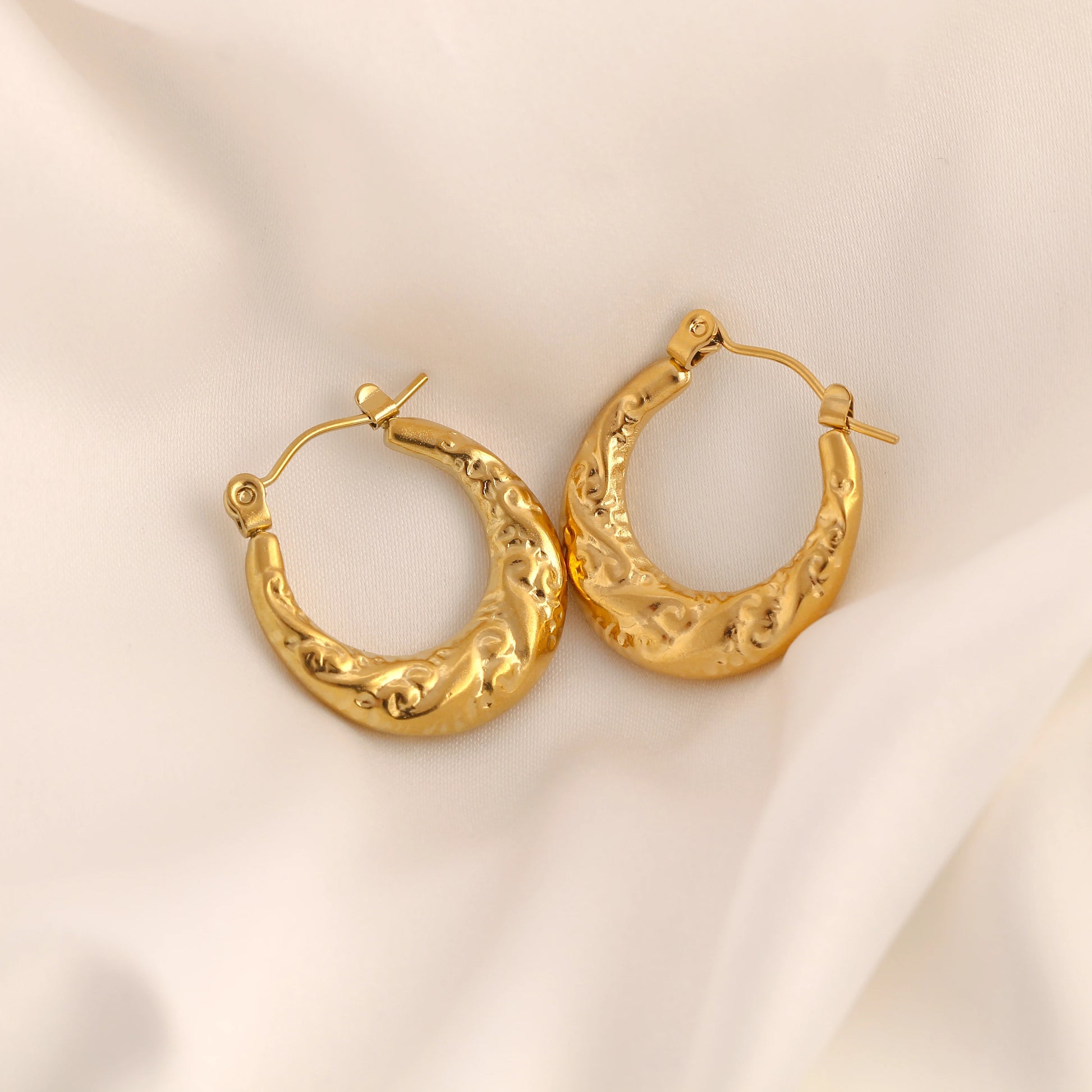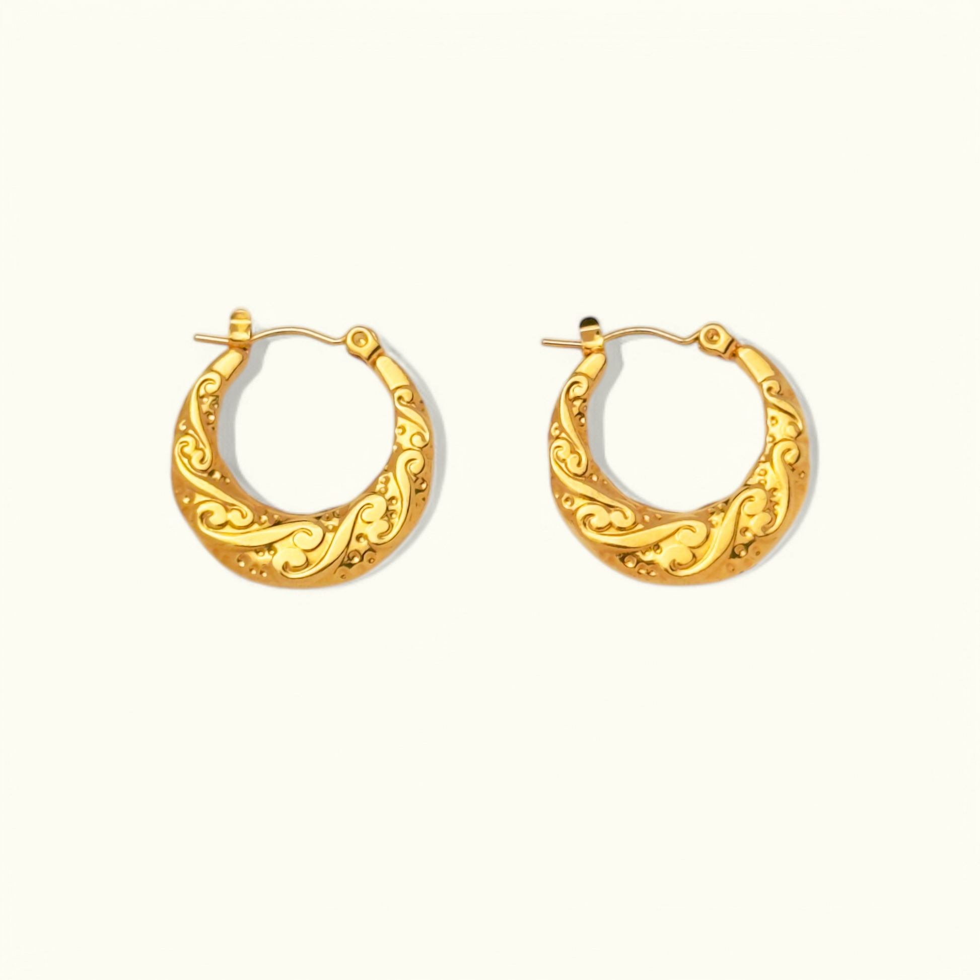 Intricately detailed with ornate engravings, the Valencia Hoops capture old-world charm with a modern twist. Inspired by vintage artistry, these statement earrings exude elegance, making them the perfect touch of sophistication for any look.