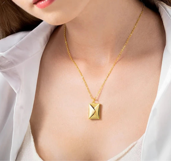 Express love in a special way with our Envelove Necklace. The delicate anti-tarnish stainless steel pendant conceals a heartfelt message that says "Love You". Durable and timeless, this necklace makes for an enduring symbol of affection. Get ready for compliments and meaningful conversations.