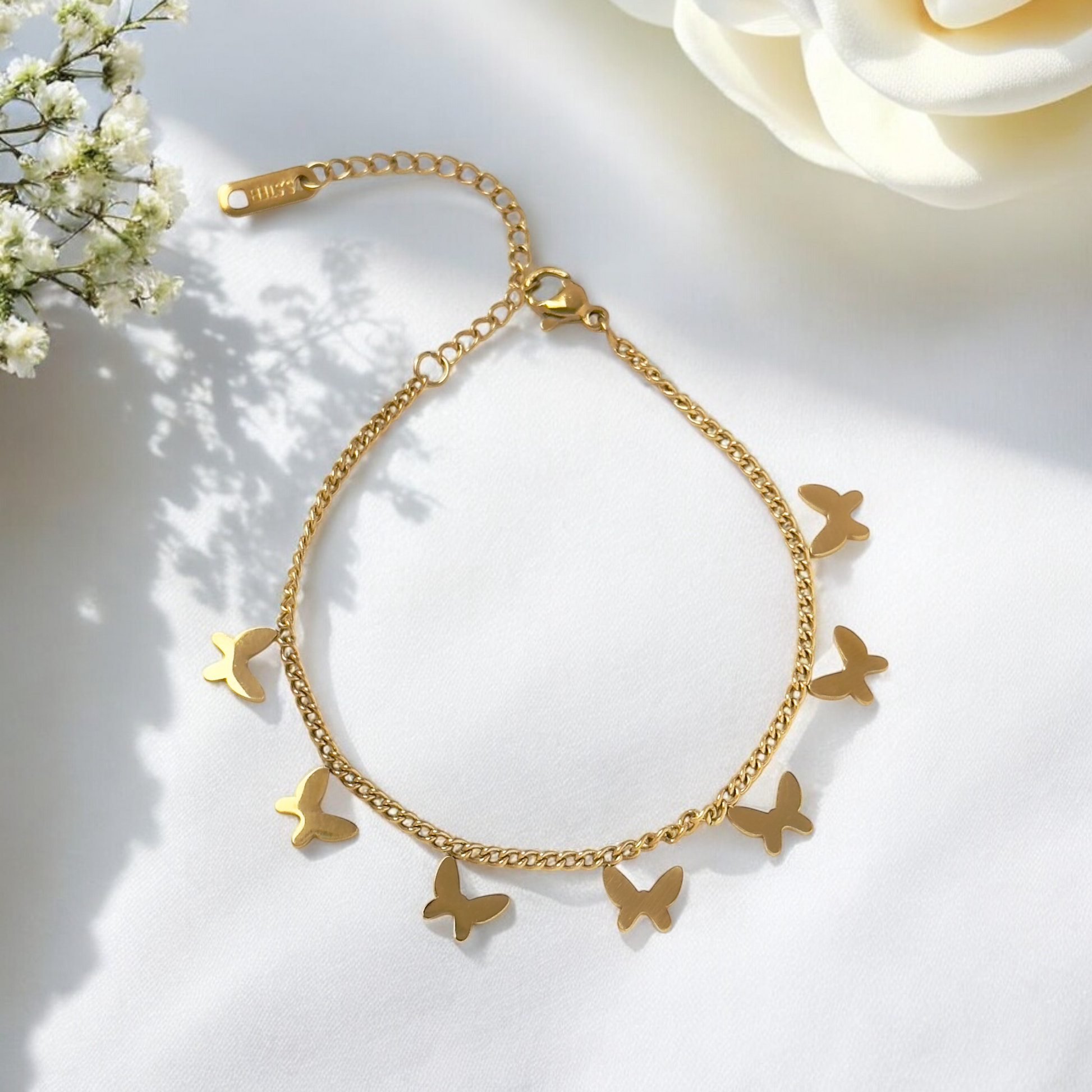 Delicate yet captivating, the Flutter Charm Bracelet features an array of dainty butterfly charms gracefully dangling from a sleek gold chain. A symbol of transformation and beauty, this elegant piece adds a whimsical touch to any outfit. Perfect for stacking or wearing solo, itβs a must-have for nature lovers and minimalists alike!