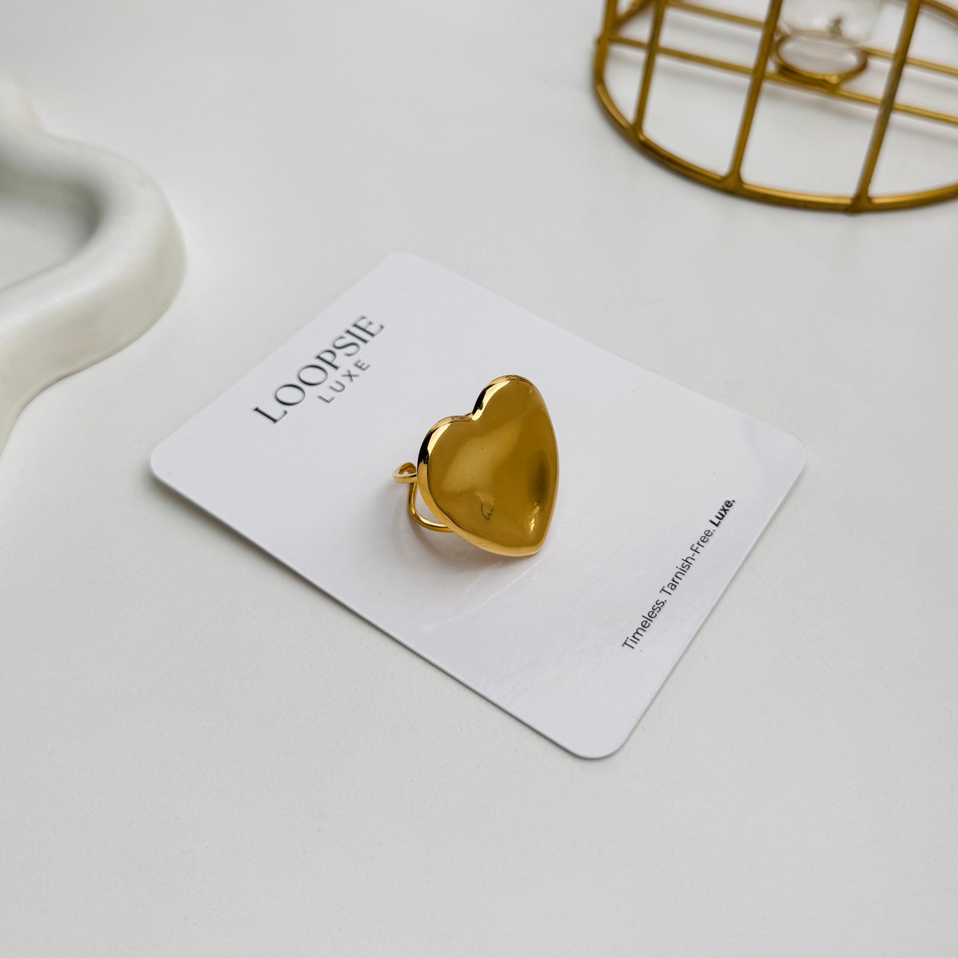 Bold love, but make it luxe. The Golden Blooming Heart Ring is your ultimate statement of self-love, confidence, and power. With a soft sculpted heart in high-polish gold, this chunky piece adds romantic flair to your modern wardrobe. Whether worn solo or stacked, it draws eyes and compliments.