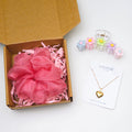 Golden Heart Necklace Gift Hamper for Girls β Scrunchie & Flower Hair Claw
