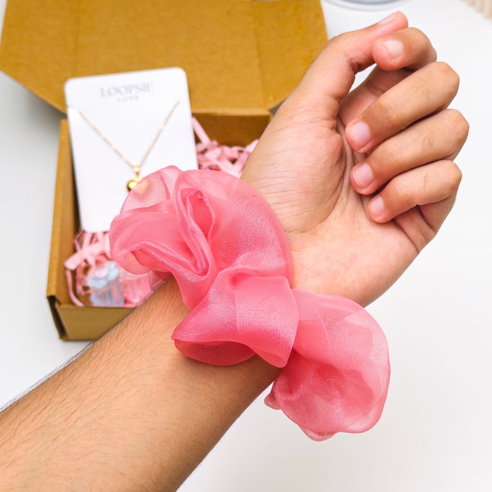 - π 1x Organza Scrunchie (Pink) β Light, voluminous & perfect for soft hairstyles