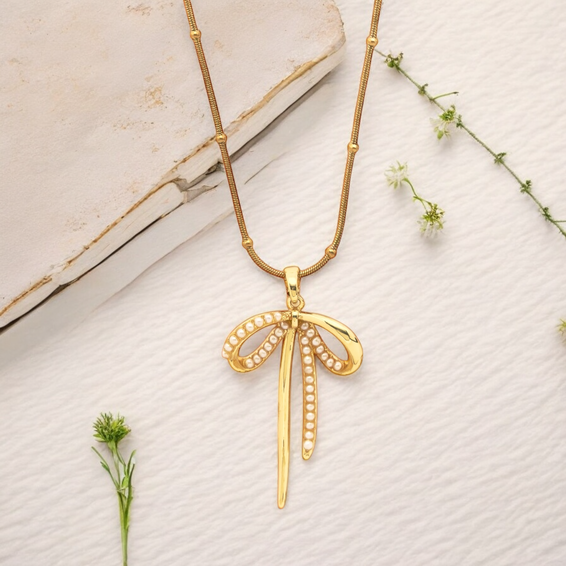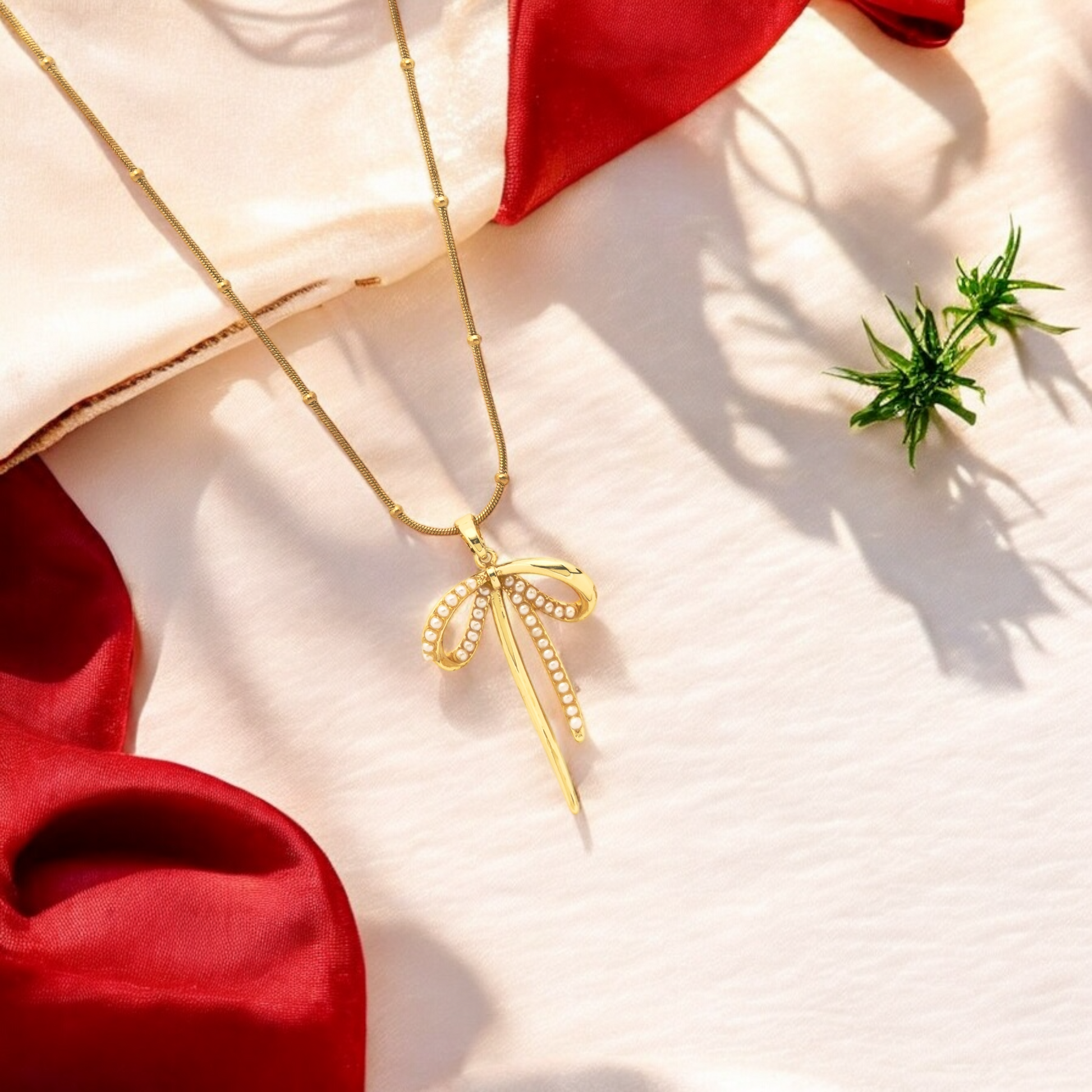 Golden Pearl Bow Necklace