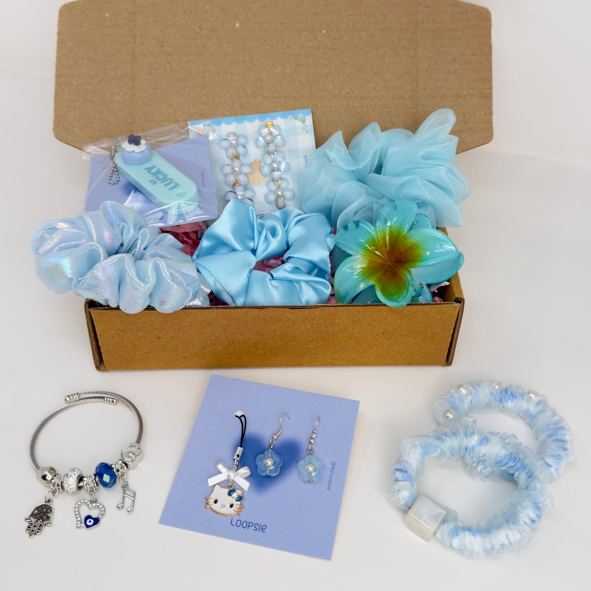 Unbox your dose of calm skies & cozy vibes — curated in cool tones, shimmer, and total cuteness!