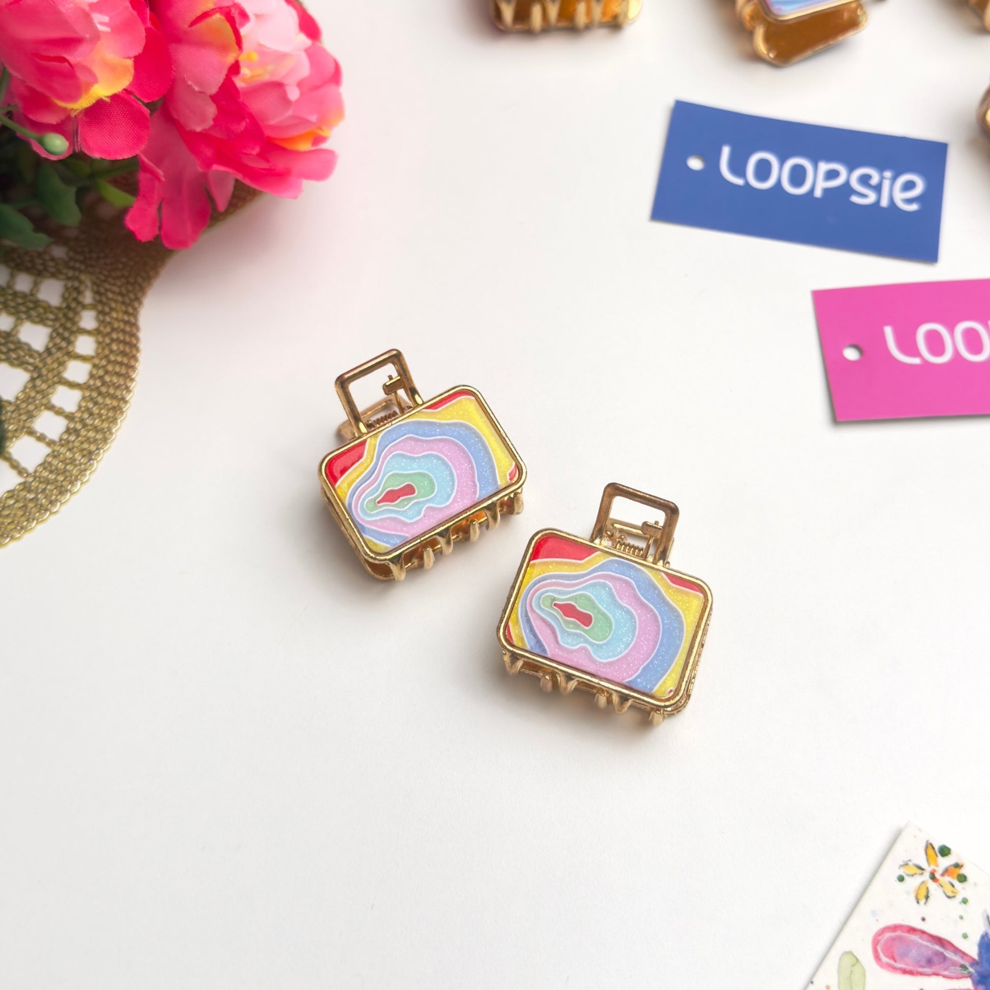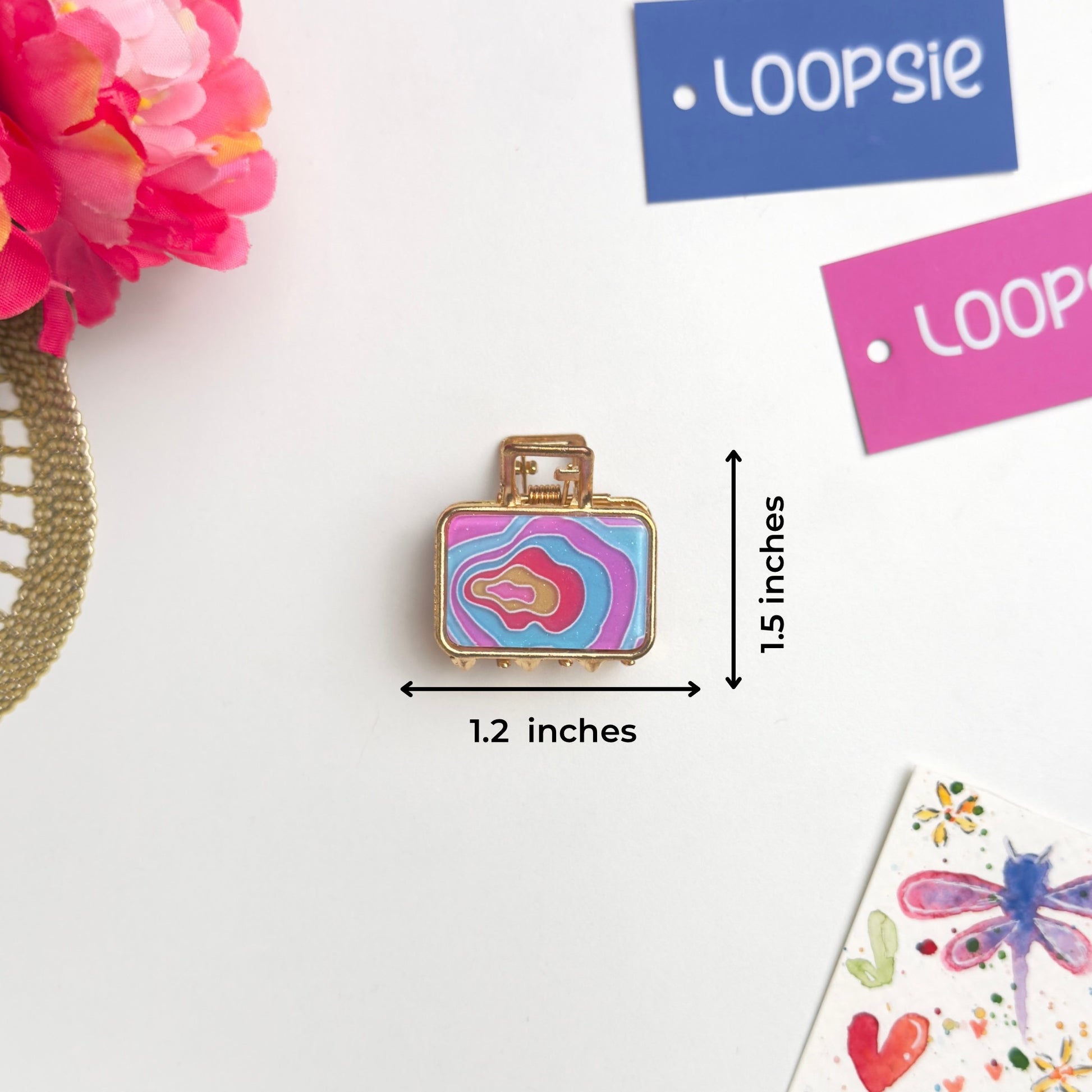 Add a pop of color and sparkle to your everyday look with our Mini Metallic Abstract Claw Clip. Featuring a glossy, glittery abstract design on both sides and a luxe golden metal frame, this mini claw is small in size but big on style.