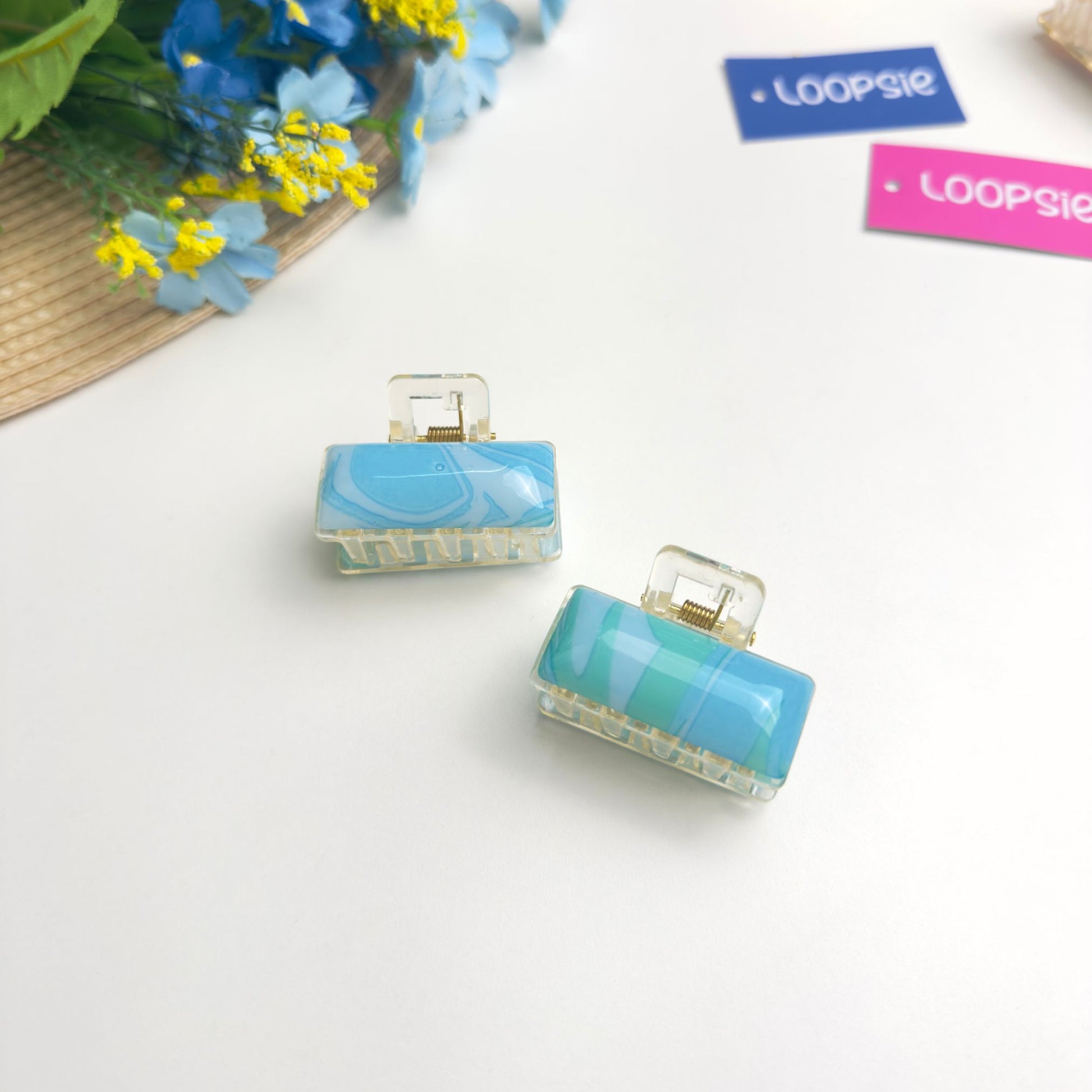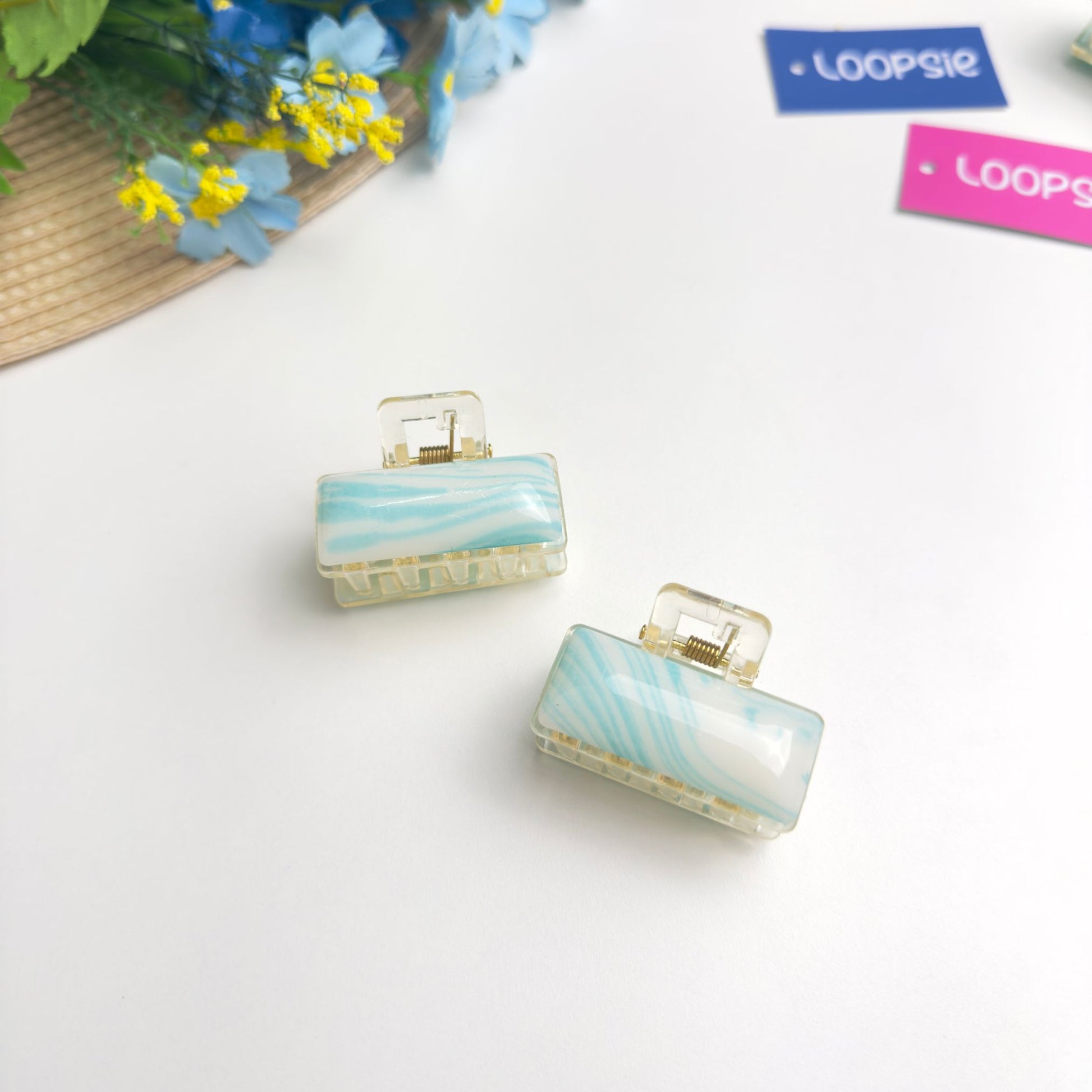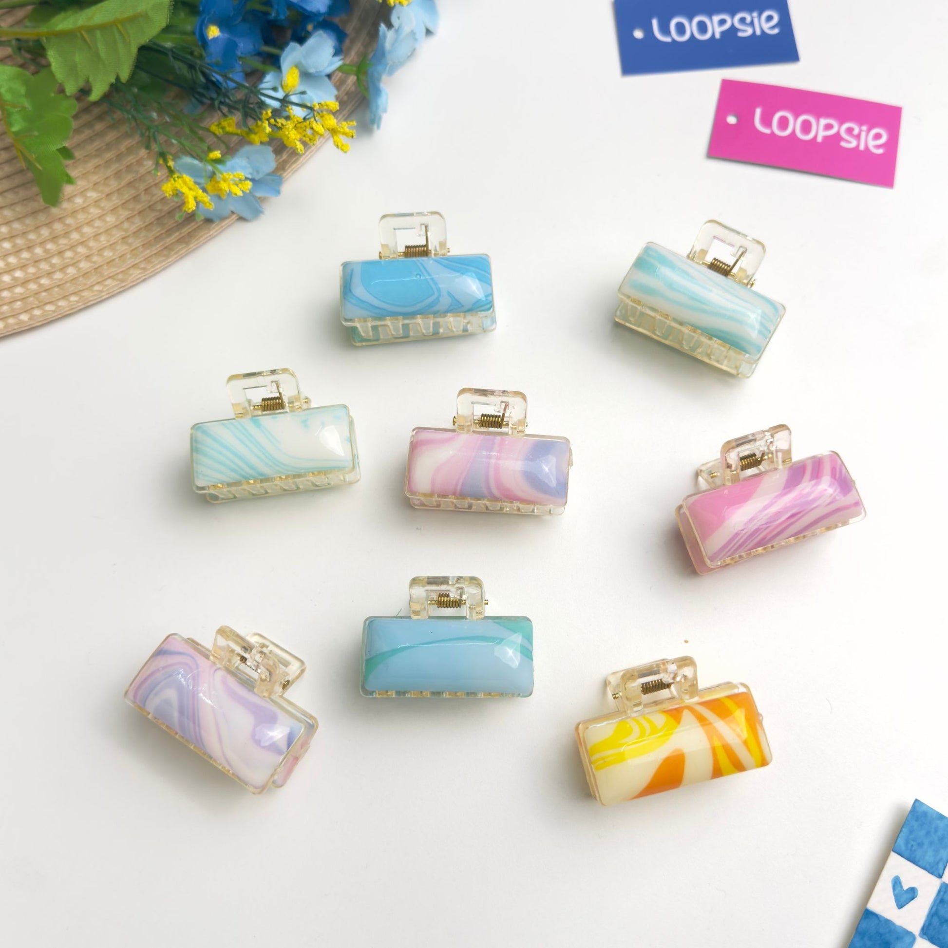 Bright, swirly, and full of charm Mini Marble Cloud Claws. These eye-catching rectangular hair claws feature dreamy abstract marble patterns, each one slightly different and totally one-of-a-kind.