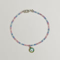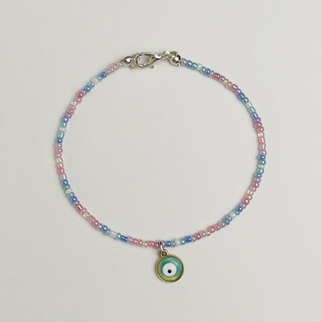 Soft pastel colors meet protection with the Pastel Eye Anklet – a dreamy blend of lavender, blue, and pink beads with a dangling evil eye charm.