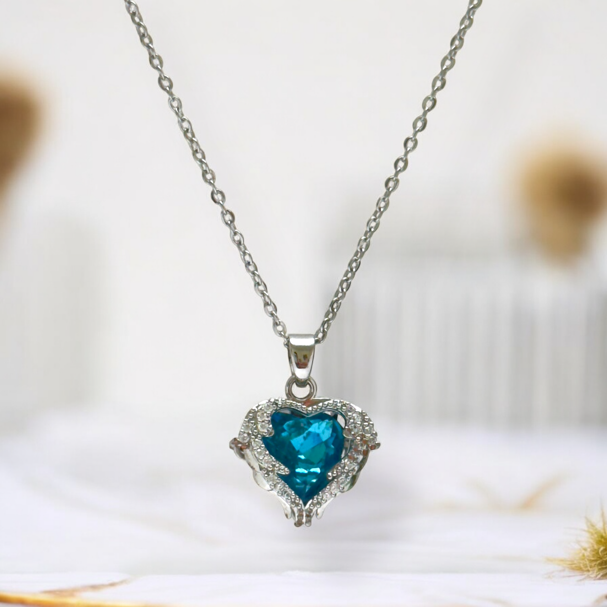 ย Reignite your fire with the Phoenix Heart Necklace, a symbol of strength, rebirth, and resilience. Featuring a fiery blue crystal heart embraced by angelic wings, this pendant represents rising from the ashes, transformation, and endless passion. The deep ocean-blue gemstone glows like a burning ember, making this piece a bold statement of empowerment.
