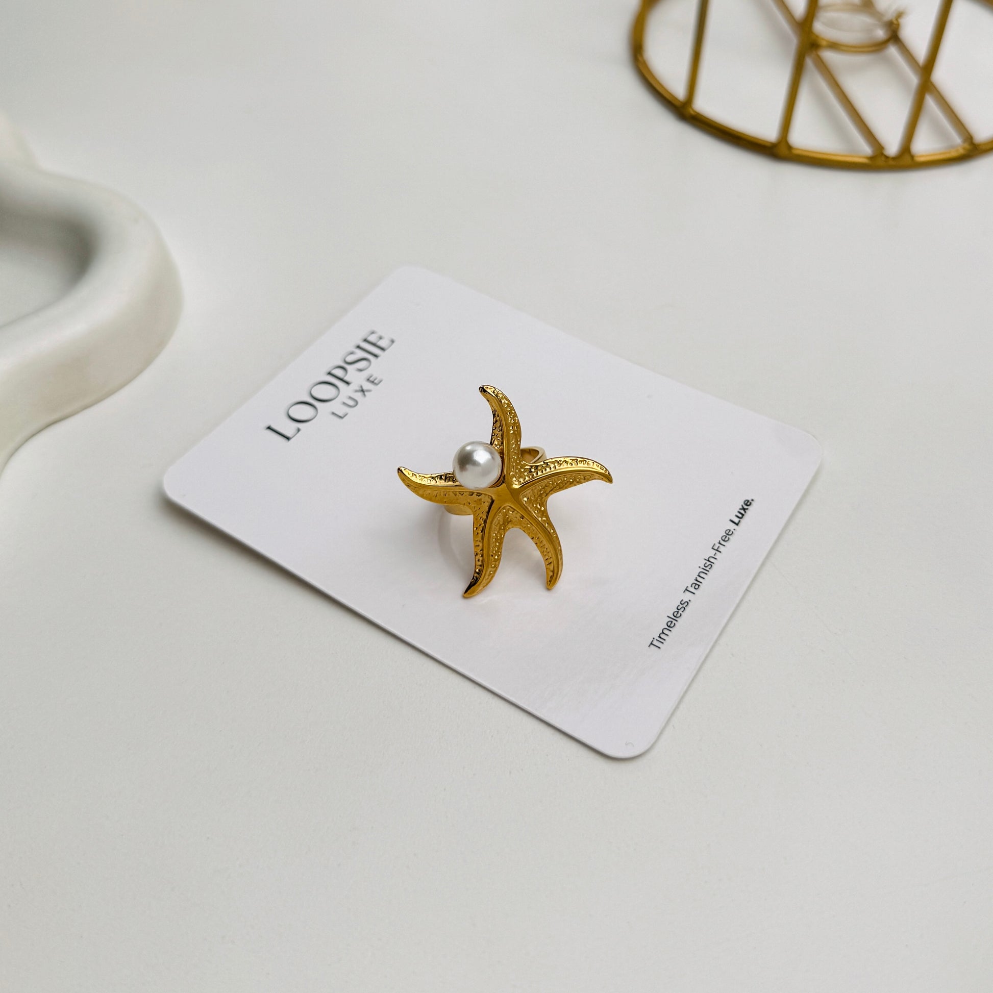 A dreamy starfish ring with a pearl glow β beachy yet luxe πβ¨
