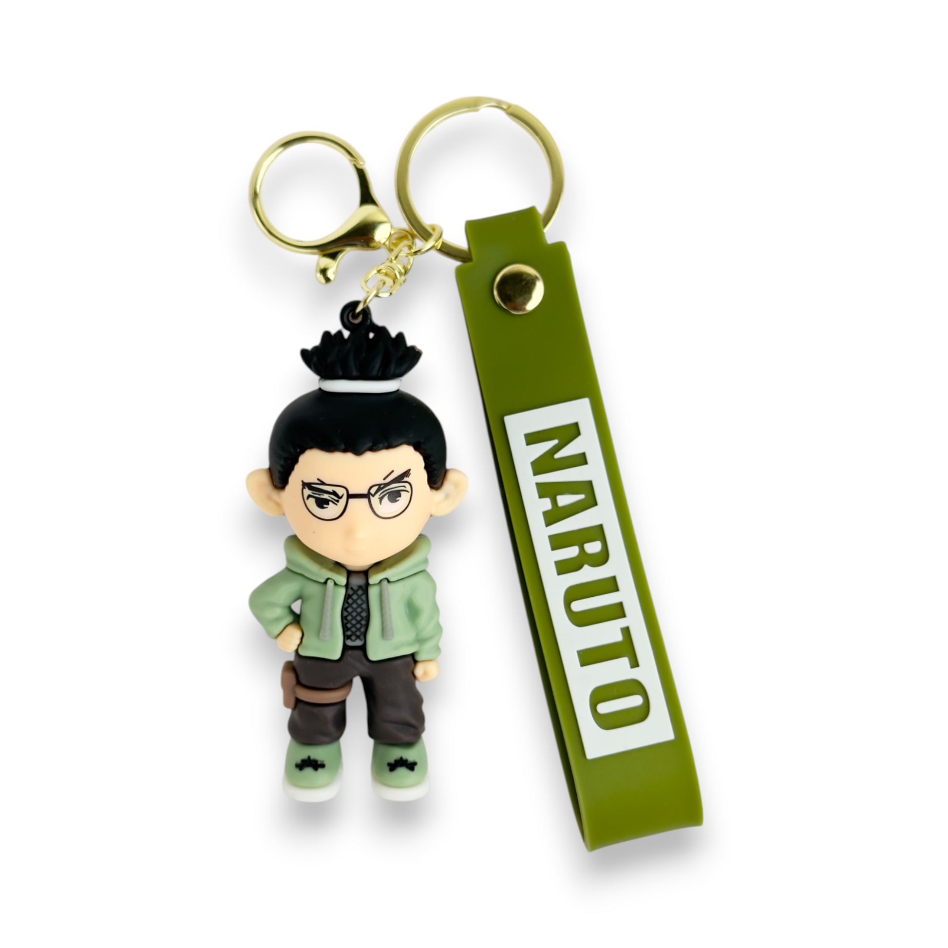 Channel the calm, clever vibe of the Leaf Village’s ultimate strategist with this Shikamaru Nara Keychain. Featuring his signature ponytail, hands-in-pocket pose, and iconic green flak jacket, this chibi-style keychain is perfect for true Naruto fans. Comes with a bold olive green "NARUTO" strap and sturdy golden clasp.