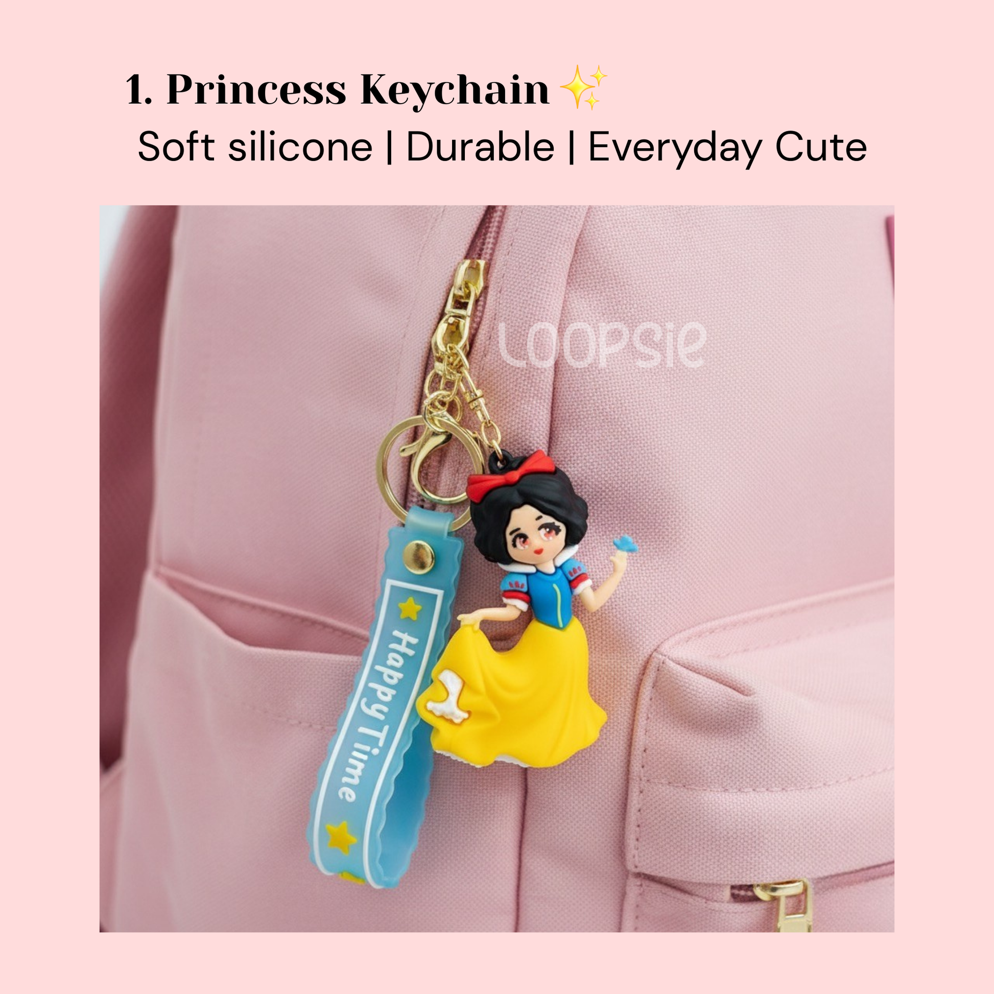 - 1 Princess Keychain with “Happy Time” strap