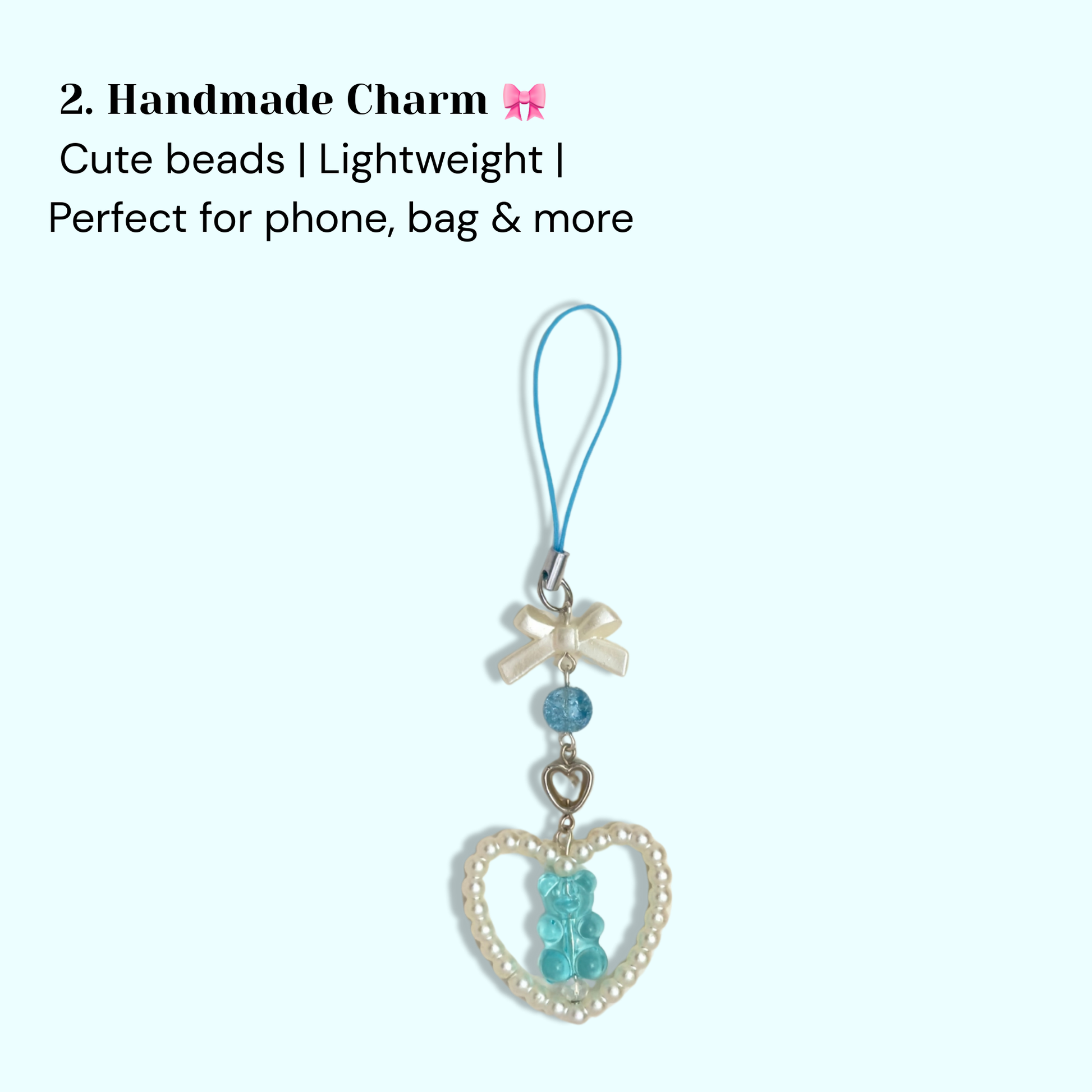 - 1 Handmade Beaded Phone/Bag Charm with pearls & bow details