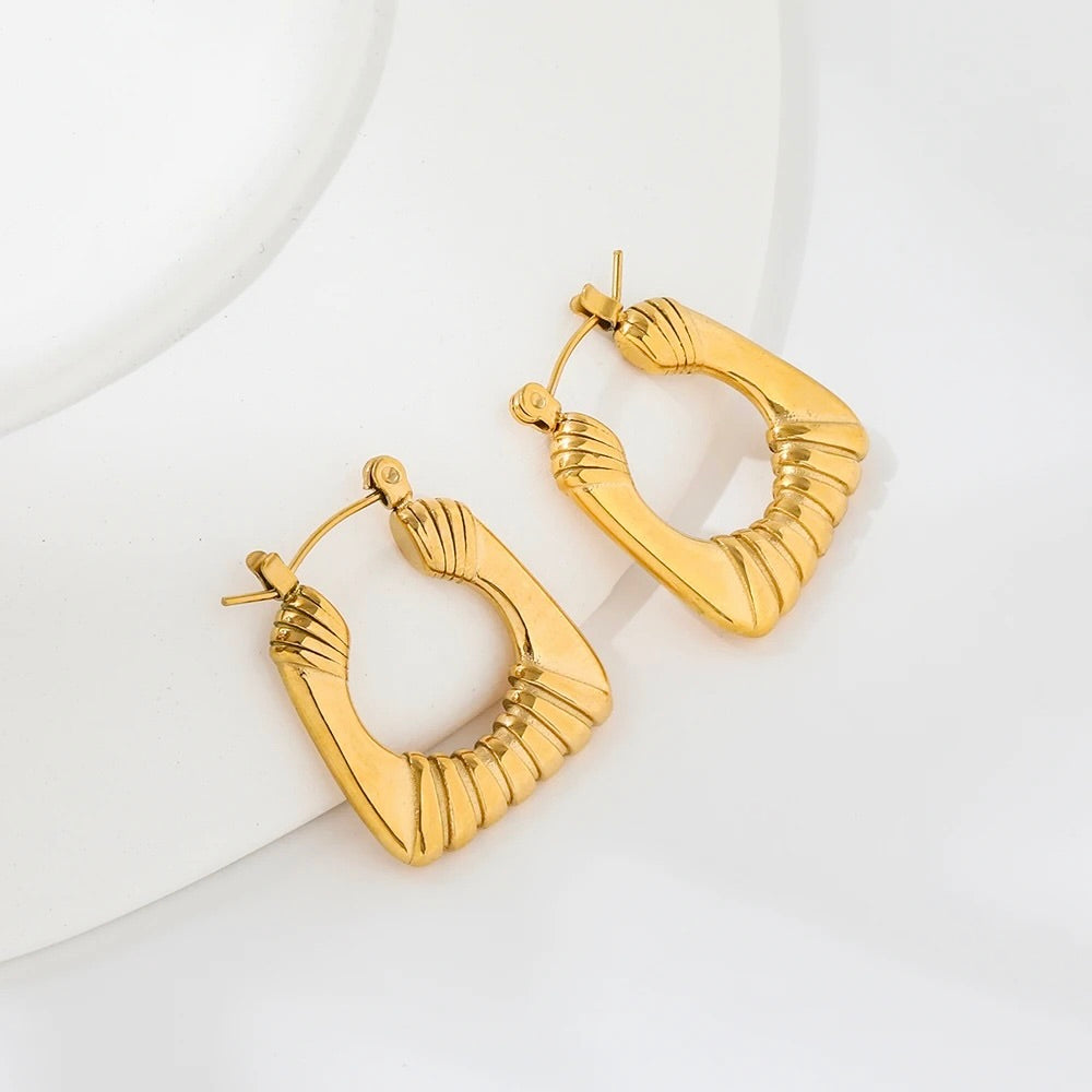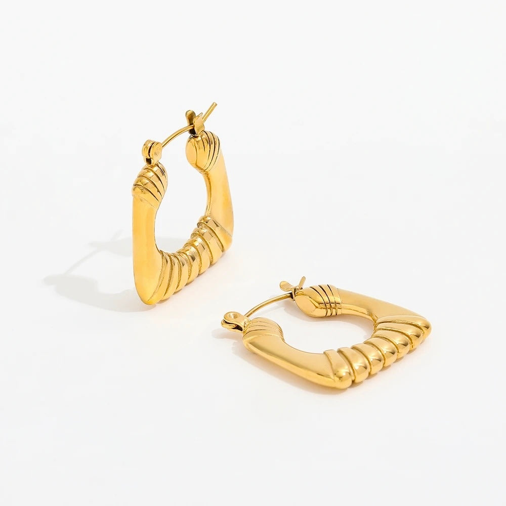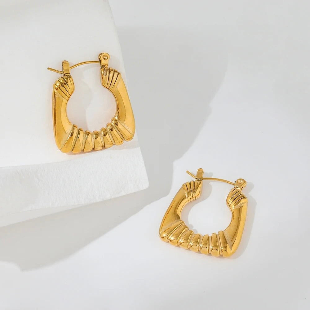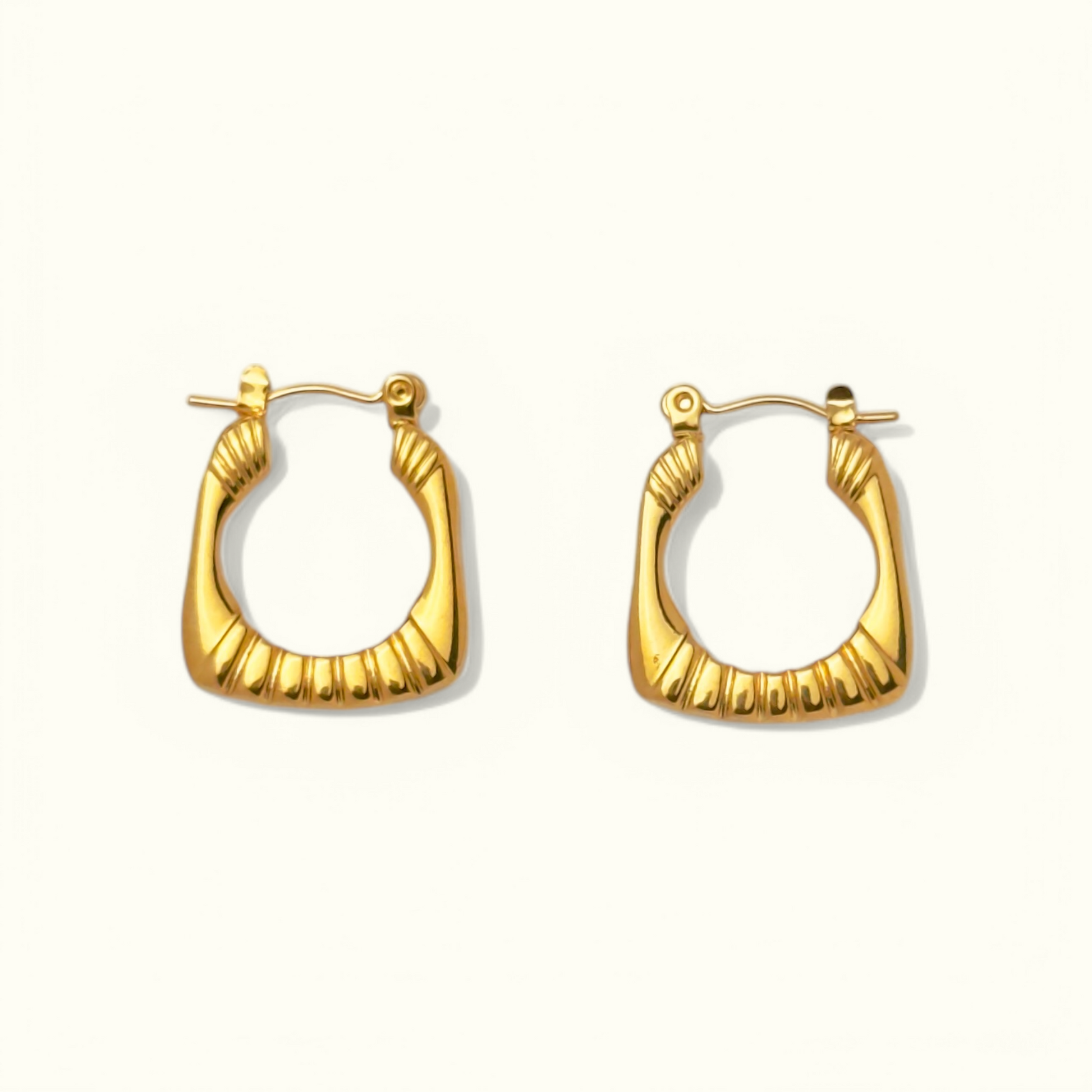 Radiating timeless elegance, the Soleil Hoops feature a sculpted gold design inspired by the warmth of the sun. Their unique shape and textured detailing make them a statement piece, perfect for adding a touch of luminous sophistication to any look.
