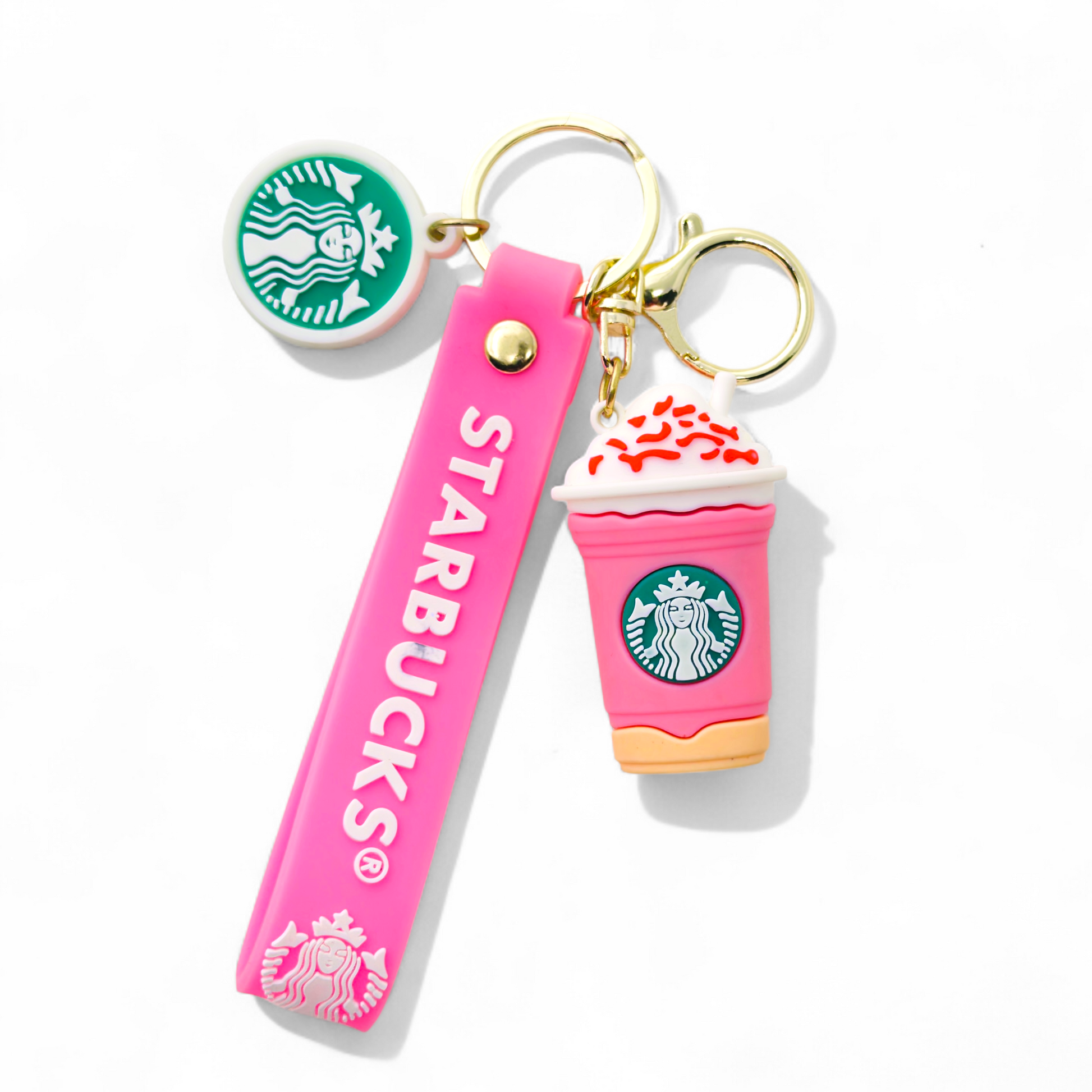 • Matching pink cafe lover strap and logo charm