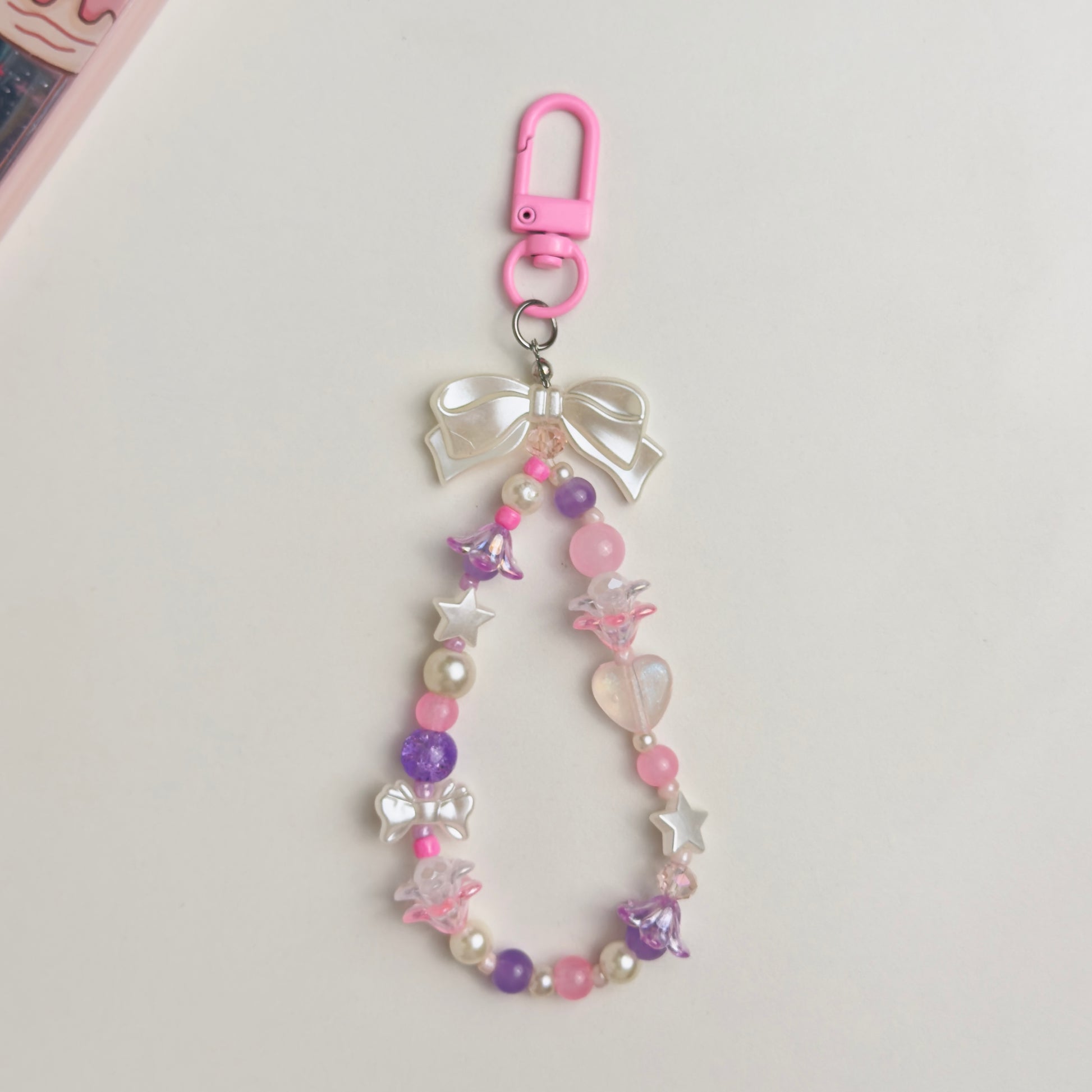 A dreamy mix of pink, lilac, and pearly beads—sprinkled with stars, hearts, and bows to bring all the magical vibes! Whether you’re dressing up your phone, bag, or keys, this charm adds the perfect touch of sweetness.