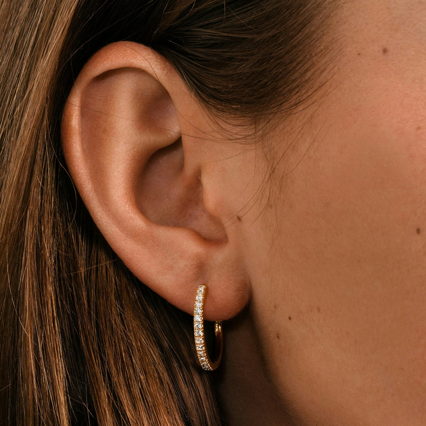 Bask in the golden glow of Sunset Dreams Hoops, where elegance meets effortless charm. These radiant hoops shimmer with pavΓ©-set stones, capturing the warmth of a sunset in every angle. A timeless essential for day-to-night glamour.