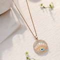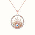 A symbol of protection and radiance, the Celestial Evil Eye Necklace features a mesmerizing blue evil eye at the heart of a sunburst design, encased in a sparkling halo of crystals. Designed to ward off negativity while adding elegance, this piece is a must-have for those who believe in style with meaning.