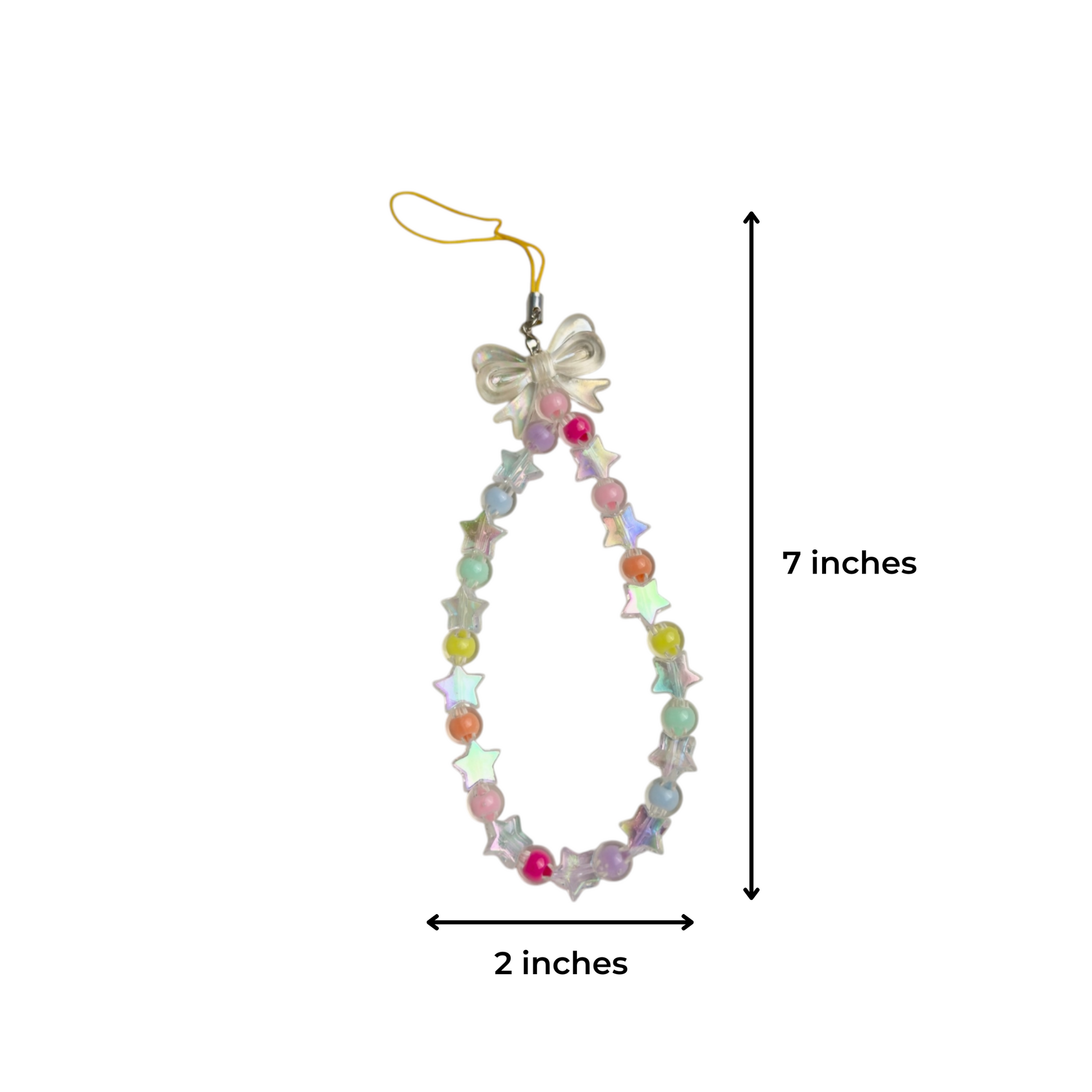 - Made with pastel acrylic beads + iridescent star accents