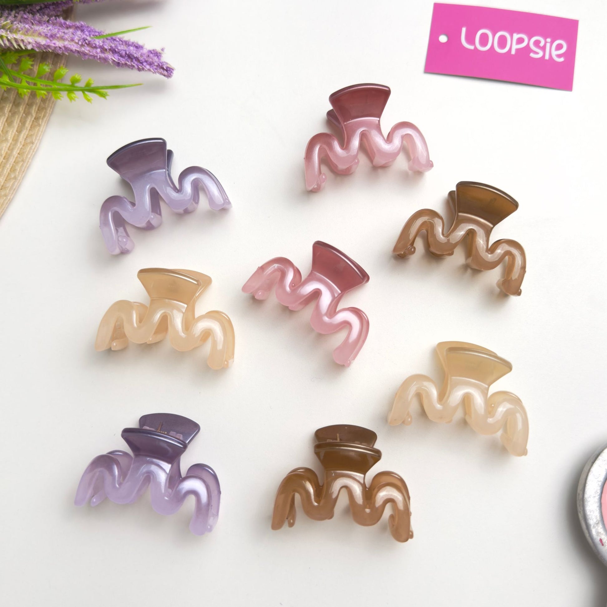 Mini Zig Zag Claws — featuring a bold wavy silhouette and a shimmering gloss finish that turns everyday hair moments into soft style statements. Designed using premium-quality plastic, these mini claws are made for both fashion and function.