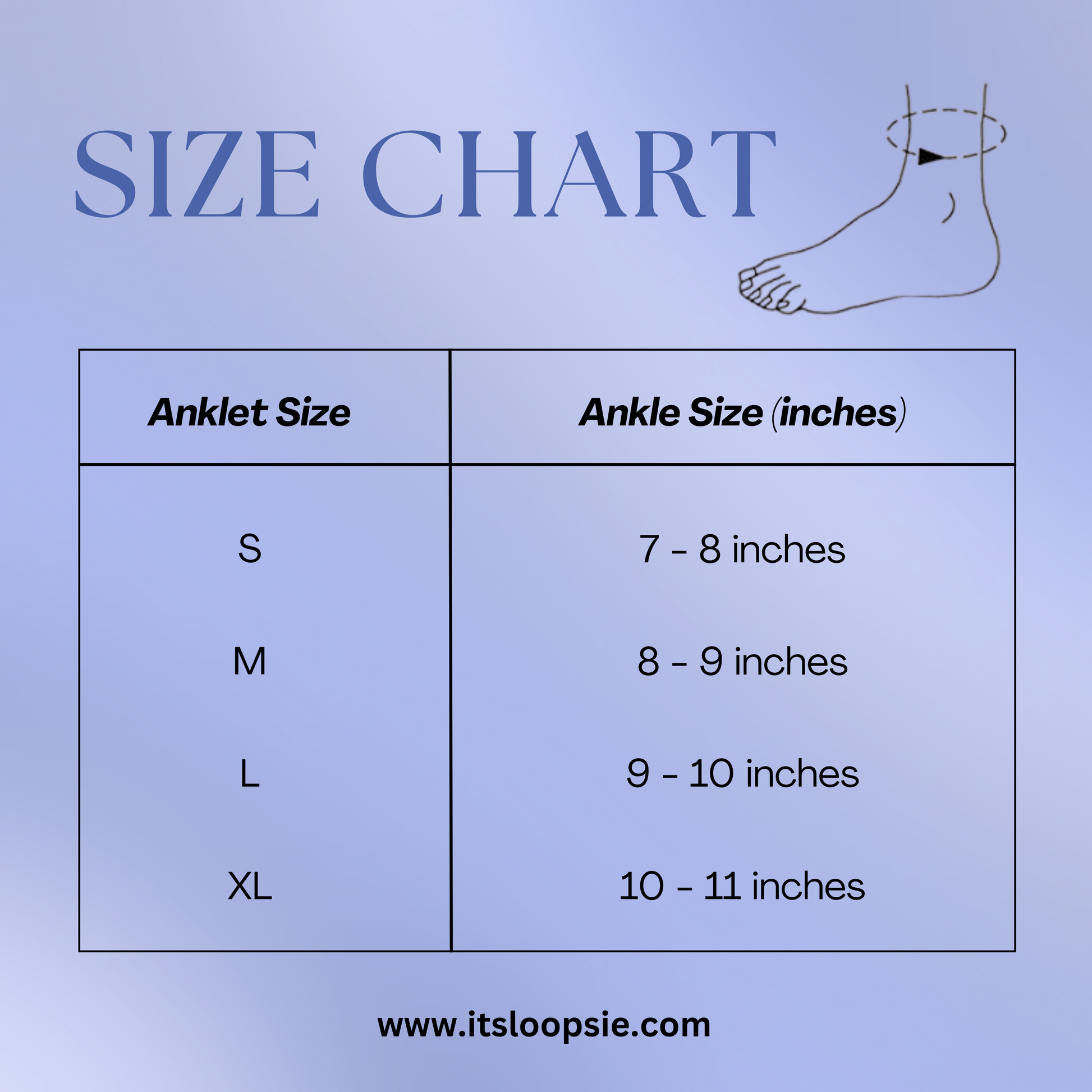 Example: If you pick size Small, the anklet is 7 inches + 1 inch extension chain adjustable up to 8 inches.